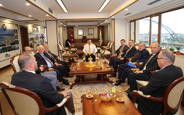 İsmail Kuyumcu ve yönetim kurulu üyeleri Rize Valisi Kemal Çeber'i makamında