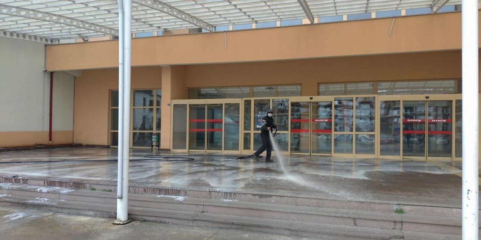 Yeni tip Corona Virüs tedbirleri kapsamında talep üzerine Kaçkar Devlet Hastanemiz ve Adliye Sarayı binamızın giriş ve dış mekan dezenfekte çalışması tamamlanmış olup, özellikle acil ve poliklinik girişi Belediyemiz ekiplerince tazyikli, köpüklü ve ilaçlı su ile yıkaması tamamlanmıştır.