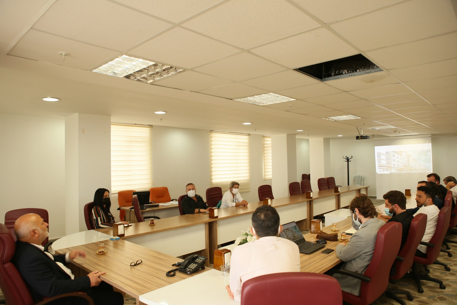 Çevre ve Şehircilik Bakanlığımızca onaylanan “Çevre Dostu Sokak” projemiz kapsamında ilk etapta Cumhuriyet Caddesinde bulunan ve dış cephesi kötü durumda olan binalar üzerinde uygulayacağımız diş cephe giydirme ile ilgili İlçemizdeki mimar arkadaşlarla bir araya gelerek konu hakkında fikir alış verişinde bulunduk.