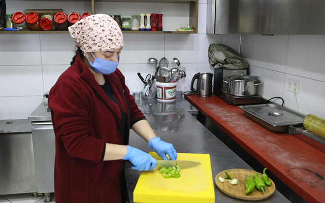 evinde misafir edilen 90 kişilik sağlık çalışanına sıcak yemek hazırlayarak