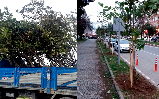 300 adet getirdiğimiz ağaç fidanlarının bir kısmı şehrin çeşitli yerlerine dikilmiş olup hava ve mevsim şartlarının olanak vermesiyle bundan önce