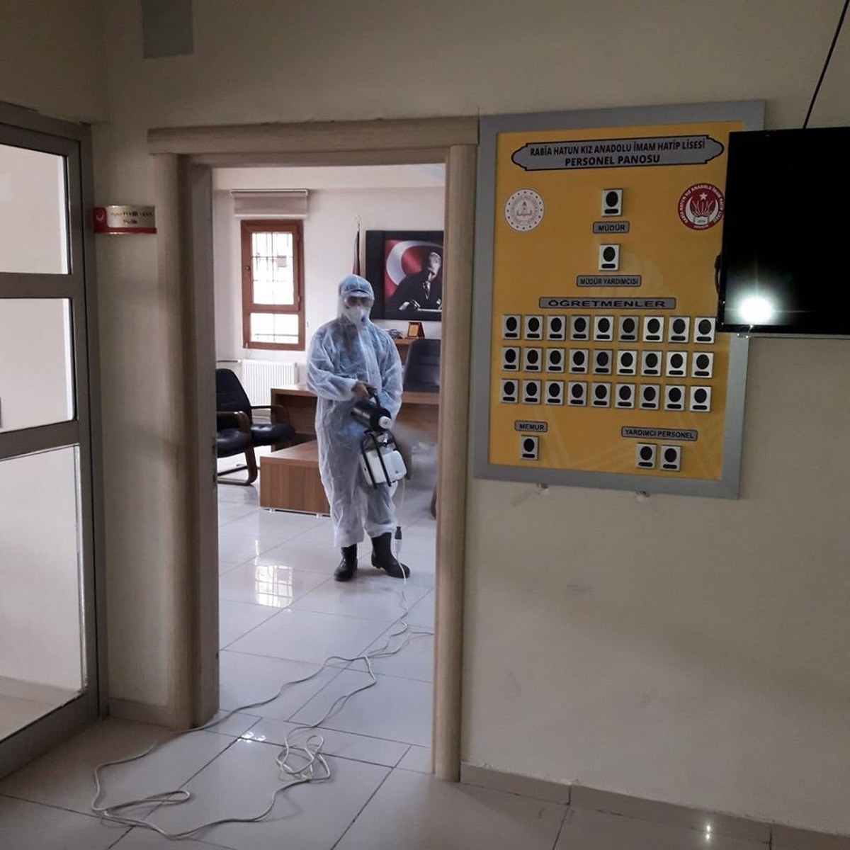 kapıları tazyikli, köpüklü ve ilaçlı su ile yıkanırken, iç ve ofis ortamı da